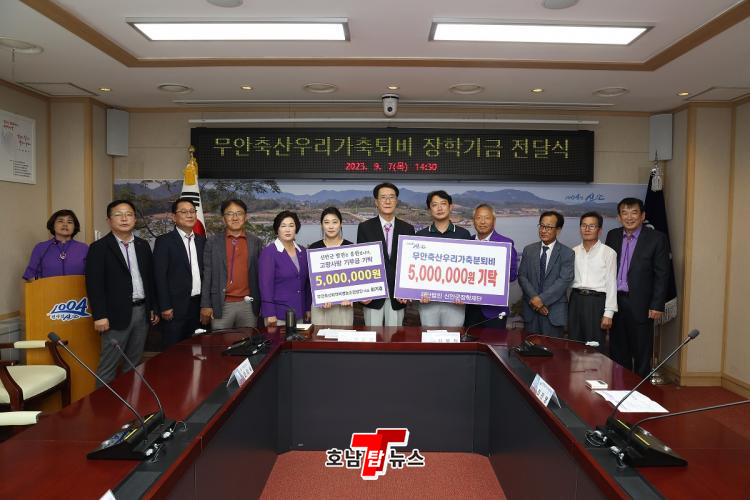 ¹«¾ÈÃà»ê¿ì¸®°¡ÃàºÐÅðºñ(´ëÇ¥ ÃÖ±âÈÞ) ÀÓ¿øµéÀº Áö³ 7ÀÏ ½Å¾È±ºÃ»¿¡¼ Áö¿ª ÀÎÀç À°¼ºÀ» À§ÇÑ ÀåÇбâ±Ý 500¸¸ ¿ø°ú °íÇâ»ç¶û±âºÎ±Ý 500¸¸ ¿ø, ÃÑ 1000¸¸ ¿øÀ» Àü´ÞÇß´Ù.